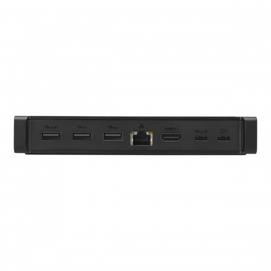 ASUS ROG Bulwark Dock (2025) DG300 dokovací stanice 7v1 * Aura Sync Porty: * 1x RJ-45 (Gigabit) * 1x kombinovaný audio konektor * 1x HDMI™ 2.1 * 1x USB 3.2 Gen 2 typ A (10 Gb/s/5,0V 1,5A) * 2x USB 3.2 Gen 2 typ A (10 Gb/s/5,0V 0,9A) * 1x USB 3.2 Gen 2 typ C (10 Gb/s/vstup: 20V, 7A, max. 140W) * 1x USB 3.2 Gen 2 typ C upstream/systémový vstup Rozlišení: 3840x2160@144Hz nebo 7680x4320@30Hz Barva: černá Rozměry: 160*74*25,5mm Hmotnost: 335g ± 10% Obsah balení: * ROG Bulwark Dock * kabel ROG USB-C (250mm) * uživatelská příručka * záruční list Záruka: 2 roky