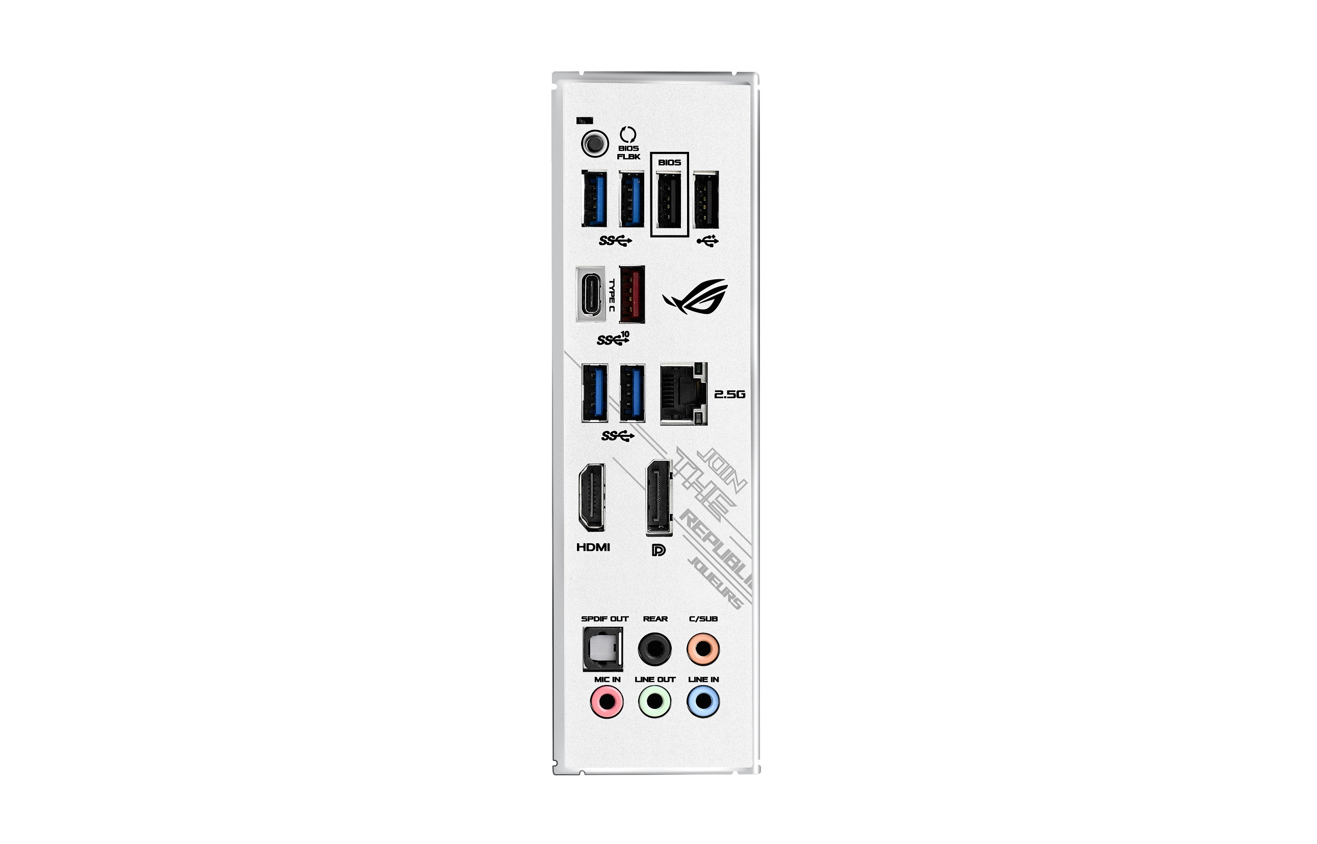 ROG Strix B550-A Gaming jednoduše nelze přehlédnout. Její ohromující bílé a stříbrné provedení je doplněné přepracovaným logem ROG a zapuštěným kybertextovým označením na krytu I/O. Tyto nové designové prvky posouvají ROG Strix odvážně směrem k budoucnosti při současném odrazu svých herních kořenů.