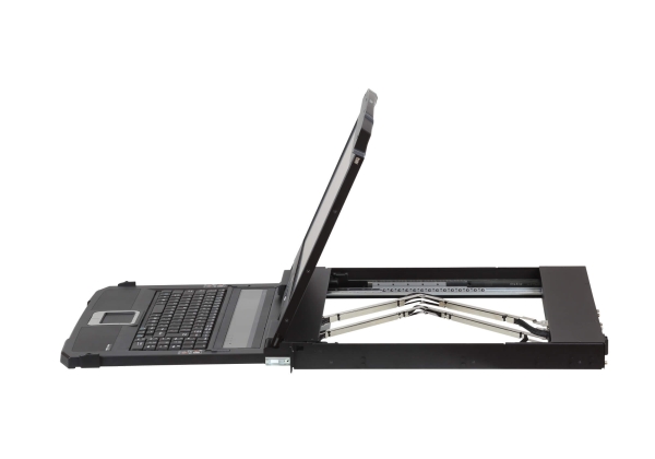 Integrated KVM Console with short depth dual rail design and a 18.5” LED-backlit LCD monitor allows you to work in narrow spaces