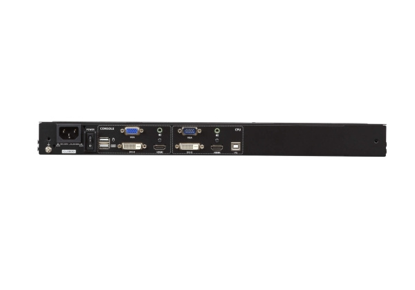 The CL3800 USB HDMI DVI VGA LCD Console is a short depth dual rail LCD KVM console featuring an 18.5" LED-backlit widescreen LCD monitor with an integrated keyboard and touchpad. The short-depth design fits all 19" equipment cabinets, and is especially suitable for shallow racks. In addition to saving valuable space on the rack, the CL3800 also provides a space-saving solution for special environments, such as outside broadcast vans (OB vans) and compact control rooms.