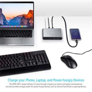 Provides USB Power Delivery 3.0 for laptop charging up to 85W (additional USB-C Power Adapter needed)
