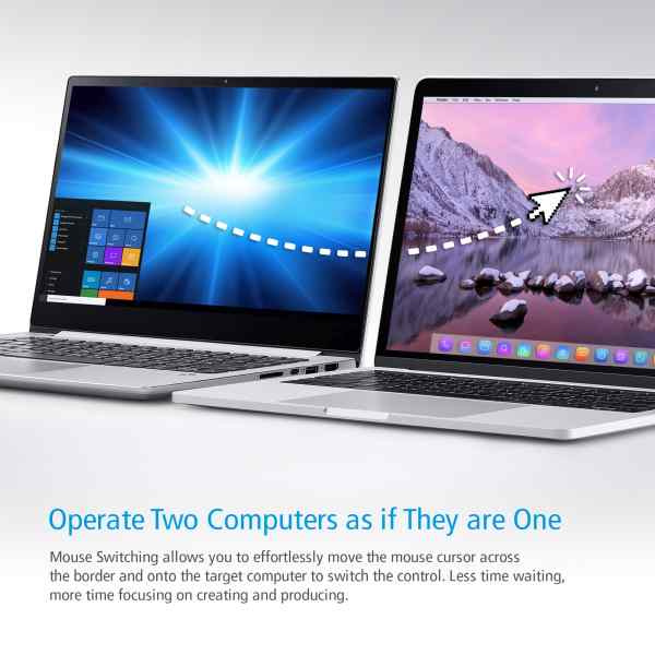 Featuring exclusive function by BEZEL X software, the US3342 allows two laptops to share files and data across two different platforms - Window and Mac, by dragging the mouse from one screen to another. The BEZEL X software makes it easier to control and transfer files in a fingertip.