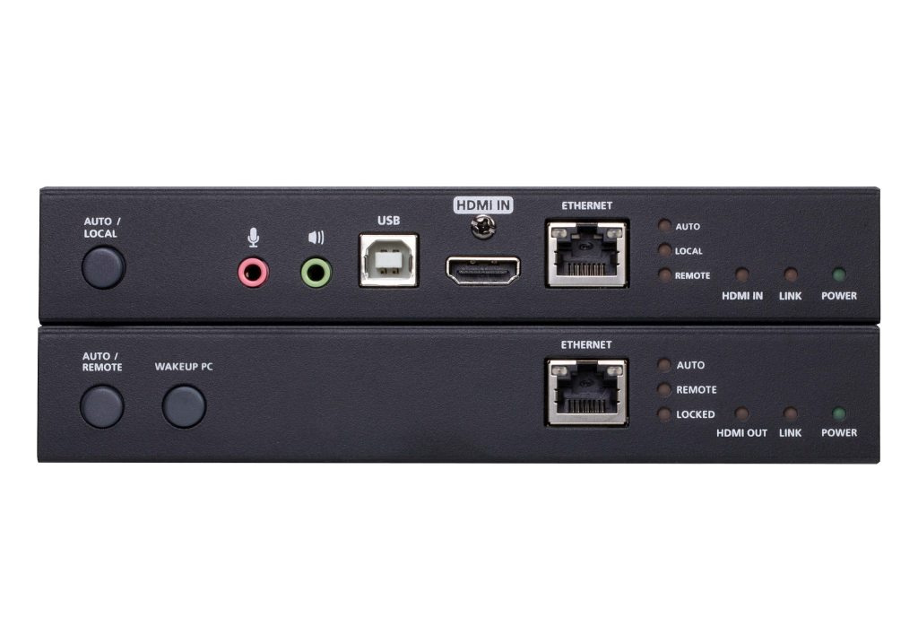 CE840 USB True 4K HDMI HDBaseT 3.0 KVM Extender využívá nejnovější technologii HDBaseT 3.0 a skládá se z místní jednotky a vzdálené jednotky, což umožňuje nekomprimovaný přenos signálu True 4K HDMI, zvuku, RS232, Ethernetu a USB přes 100 m přes jediný kabel Cat 6A (doporučuje se kabel ATEN 2L-29330 Cat 6A) nebo vyšším. Instalace je snadná, přehledná a nákladově efektivní bez kompromisů v oblasti vysoce kvalitní distribuce AV obsahu. CE840 umožňuje provoz dvou konzolí prostřednictvím dvou portů USB pro připojení klávesnice a myši USB a tlačítek pro přepínání ovládací konzole USB mezi vzdáleným a místním koncem. LED diody na předním panelu indikují, který režim ovládání USB je aktuálně zapnutý. Každá jednotka navíc obsahuje výstupní port HDMI pro místní ovládání a další dva porty USB 2.0 pro připojení periferních zařízení USB. Díky tomu mohou operátoři získávat data a spravovat zařízení na jednom místě, a to i na dálku.