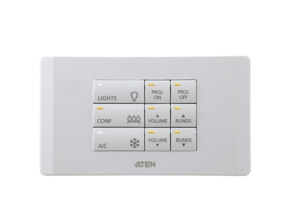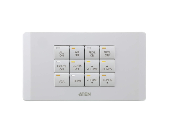 VK112EU je plně přizpůsobitelná klávesnice s 12 tlačítky určená pro použití s řídicím systémem ATEN. Klávesnice poskytuje rozhraní pro ovládání zařízení v místnosti ze standardní nástěnné čelní desky. Klávesnice je vytvořena s ohledem na flexibilitu a lze ji rozložit do 125 různých kombinací 6 až 12 tlačítek, které se do sebe zaklapnou stejně snadno jako stavebnice Lego. Po připojení k řídicímu boxu VK2100/VK1100 přes síť LAN uživatelé zjistí, že pomocí softwaru VK6000 lze bez námahy konfigurovat požadované ovládání jakéhokoli připojeného zařízení z klávesnice. S připravenými tlačítky získáte okamžité a inteligentní ovládání zařízení z klávesnice nebo klávesnic, které mohou spravovat jakékoli zařízení v místnosti. VK112EU je cenově dostupné řešení, které je ideální jako primární rozhraní v zasedacích místnostech nebo jako sekundární ovládání zařízení v učebnách a konferenčních centrech.