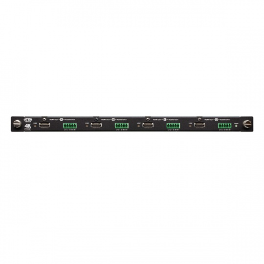 VM8824 je výstupní deska True 4K HDMI, která spolupracuje s modulárním maticovým přepínačem ATEN a nabízí snadný způsob, jak směrovat 4 analogové/digitální zdroje zvuku/videa na 4 displeje HDMI s podporou obrazu ve vysokém rozlišení True 4K. Kromě rozhraní HDMI, které přenáší digitální A/V signál, poskytuje VM8824 také 4 výstupní stereofonní zvukové porty, které umožňují extrakci zvuku HDMI.