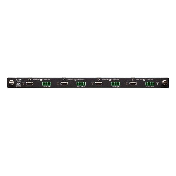 VM8824 je výstupní deska True 4K HDMI, která spolupracuje s modulárním maticovým přepínačem ATEN a nabízí snadný způsob, jak směrovat 4 analogové/digitální zdroje zvuku/videa na 4 displeje HDMI s podporou obrazu ve vysokém rozlišení True 4K. Kromě rozhraní HDMI, které přenáší digitální A/V signál, poskytuje VM8824 také 4 výstupní stereofonní zvukové porty, které umožňují extrakci zvuku HDMI.