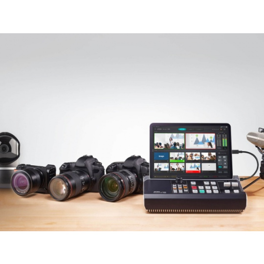 - Kompaktní ovládací panel mixéru - Přepínání a mixování mezi více zdroji videa a zvuku pomocí snadno identifikovatelných světelných kláves