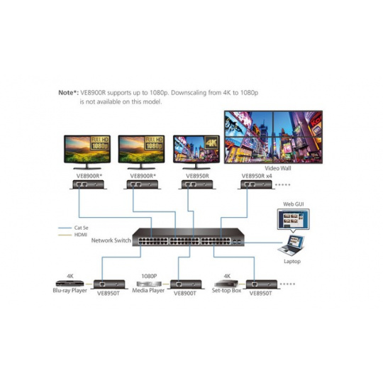 Technologie VE8900T Video over IP Transmitter VE8900T je navržen tak, aby splňoval dnešní požadavky na přenos signálu s velkým rozlíšením a 1080p a byl navržen pro snadné nastavení a ovládání. Je ideálním produktem pro širokou škálu prostředí, jako jsou například obchodní veletrhy, letiště, univerzitní kampusy, konferenční centra a nákupní centra.