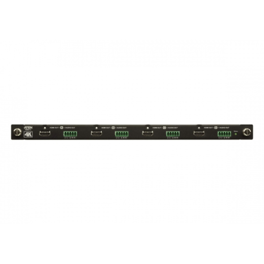 VM8814 je výstupní deska 4K HDMI, která spolupracuje s modulárním maticovým přepínačem ATEN a nabízí snadný způsob, jak směrovat 4 zdroje HDMI na 4 displeje. Kromě rozhraní HDMI, které přenáší digitální A/V signály, je VM8814 vybavena 4 stereofonními výstupními porty, které umožňují extrakci zvuku HDMI.