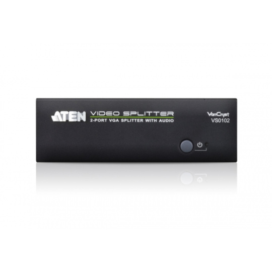 ATEN VS0102 2-Port VGA Splitter with Audio je rozbočovač VGA, který umožňuje distribuovat jeden video a audio signál VGA na dva výstupní displeje s nezávislým stereofonním ovládáním. Rozdělovač podporuje až 450MHz šířku pásma videa, což zajišťuje optimální kvalitu obrazu, podporovanou rozlišením až 1920x1440.