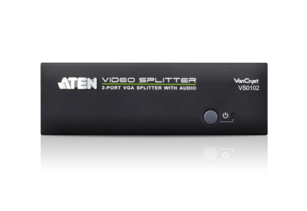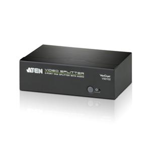 ATEN VS0102 2-Port VGA Splitter with Audio je rozbočovač VGA, který umožňuje distribuovat jeden video a audio signál VGA na dva výstupní displeje s nezávislým stereofonním ovládáním. Rozdělovač podporuje až 450MHz šířku pásma videa, což zajišťuje optimální kvalitu obrazu, podporovanou rozlišením až 1920x1440.