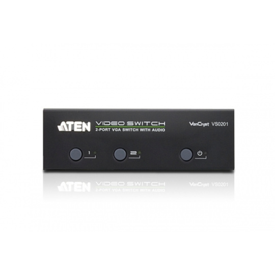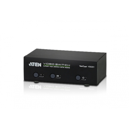 Prepínac Aten VS-0201 umožní pripojit 2 zdroje signálu VGA a audia a prepínat je na 1 zobrazovací jednotku(monitor). Zarízení je vhodné napr. na prezentace nebo do výcvikových objektu.