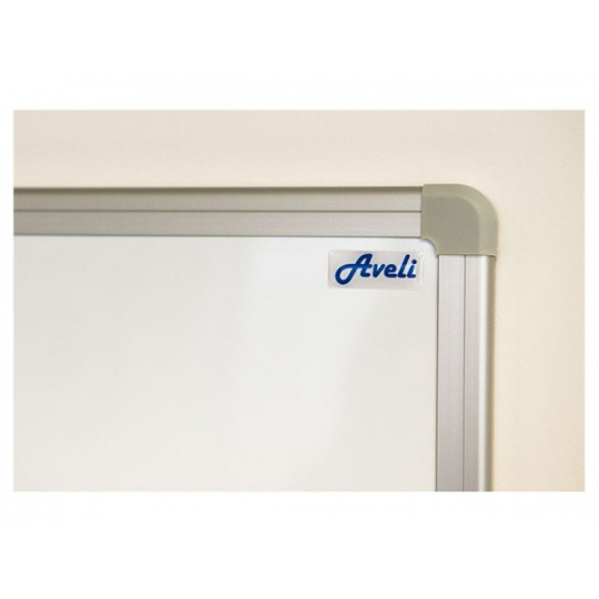 Magnetická tabule AVELI má bílý lakovaný povrch, elegantní rám z kvalitního eloxovaného hliníku, jehož součástí je praktická odkládací lišta na popisovače. Na tabuli je možné psát stíratelným fixem. Tabule má světle šedé plastové rohy, které zakryjí upevnění na zeď.