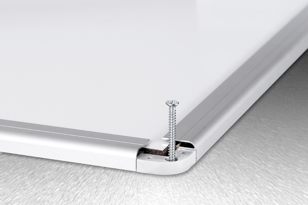Magnetická tabule s bílým lakovaným povrchem, hliníkovým rámem, pro popisování stíratelným fixem a s odkládací lištou. Budí dojem prestiže a elegance. Tabule je propracovaná do detailů bez nýtovaných spojů, ostrých hran či vyčnívajících rohů.