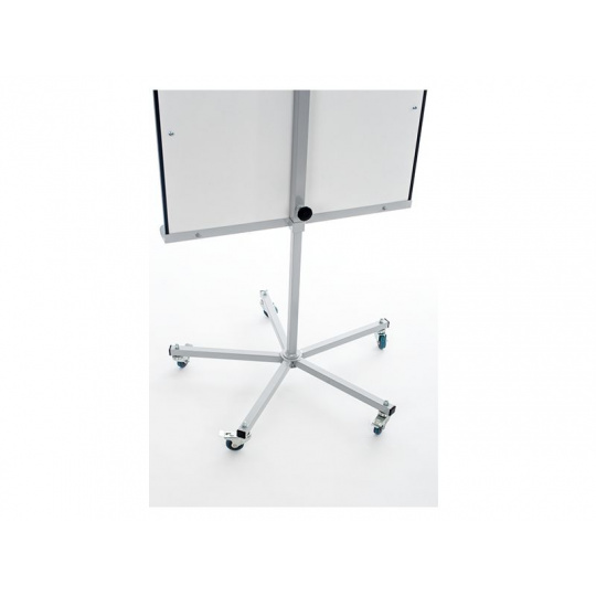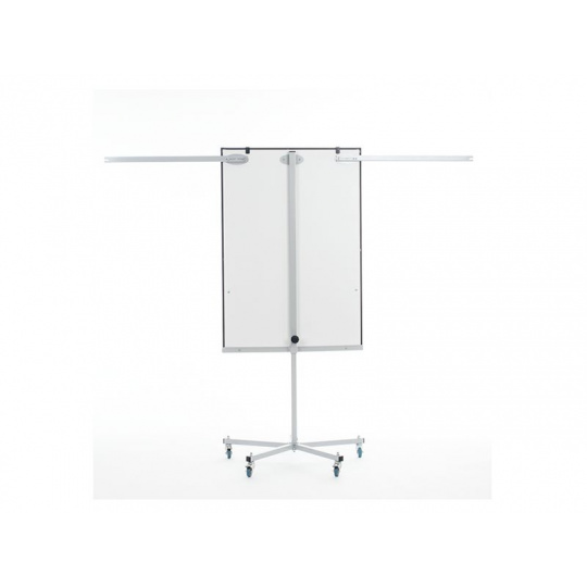 Mobilní skládací flipchart s magnetickým povrchem. Má velmi stabilní základnu s pěti kolečky a ručně nastavitelnou výšku a dvě výsuvná ramena.