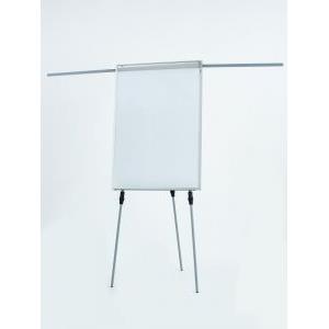 Flipchart s magnetickým povrchem. Výklopná ramena. Uchycení papíru moderním hliníkovým CLIP systémem. Teleskopické nastavení opěrných nohou.