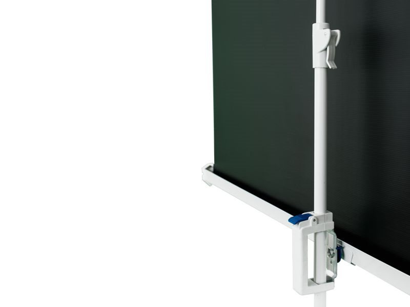 - Plátno se dá jednoduše zasunout do krytu. Chrání se tím před poškozením. Kryt plátna je pevně připevněn ke stativu. Při užívání je kryt otočen horizontálně, při složení je otočen vertikálně.