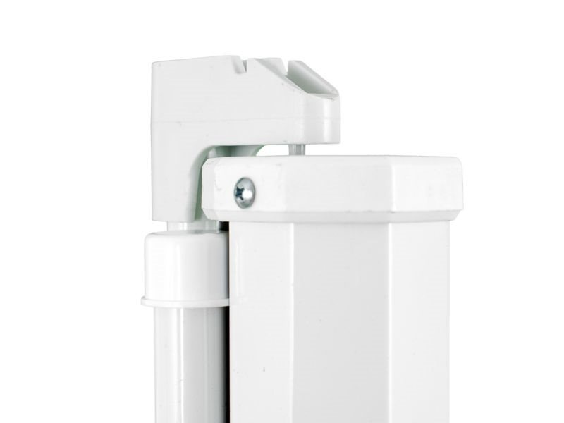 - Plátno se dá jednoduše zasunout do krytu. Chrání se tím před poškozením. Kryt plátna je pevně připevněn ke stativu. Při užívání je kryt otočen horizontálně, při složení je otočen vertikálně.