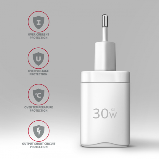 Kompaktní velikost a vysoký výkon je daný použitou novou Sil technologií. Super silicon využívá vyspělé materiály na bázi křemíku. Nabíječka tak může dosáhnout menších rozměrů a současně bezpečného, stabilního a rychlého nabíjení. Účinnost je tak shodná s GaN technologií při zachování příznivé ceny. Nabíječka je vybavena výstupy Power Delivery 3.0 / Quick Charge 4+ USB typu C a Quick Charge 3.0 USB typu A, což umožňuje rychlé nabíjení smartphonů a tabletů výkonem až 30W.