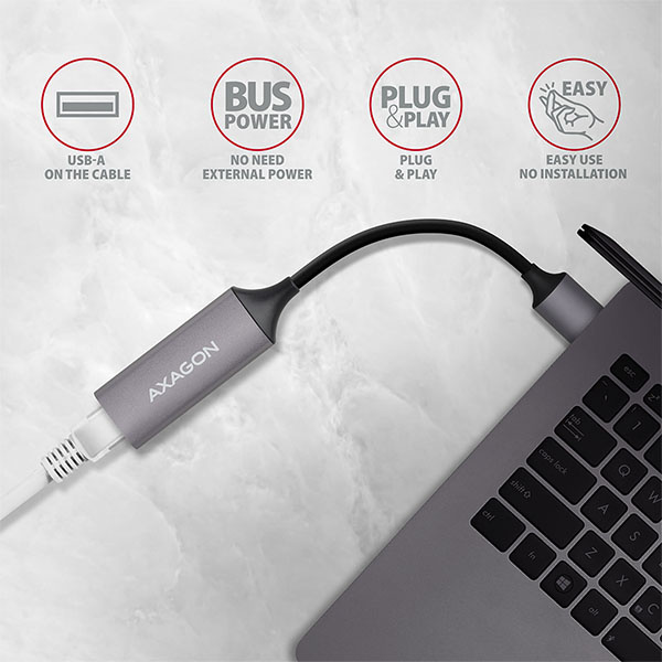 AXAGON ADE-TR, USB-A 3.2 Gen 1 - Gigabit Ethernet síťová karta, auto instal, titanově šedá