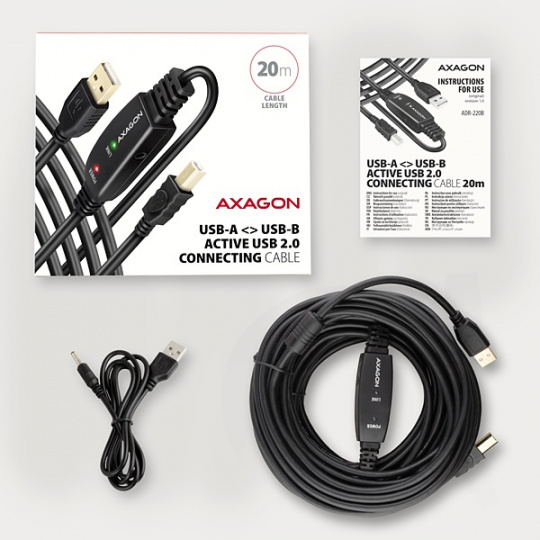 AXAGON ADR-220B, USB 2.0 A-M -> B-M aktivní propojovací / repeater kabel, 20m