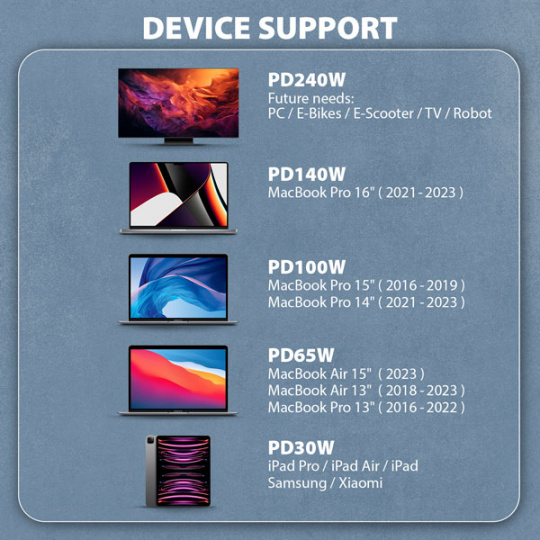Prémiový propojovací USB-C <-> USB-C datový a nabíjecí AXAGON BUCM2-CM20AB CHARGE kabel s konektory USB-C male na obou koncích. Kabel je navržen zejména pro nabíjení a napájení počítačů, monitorů, notebooků, telefonů, tabletů a dalších zařízení. Podporuje také přenos dat rychlostí až 480 Mb/s. Kabel má implementovánu nejnovější specifikaci nabíjecí technologie Power Delivery 3.1. Tato technologie přináší mimo jiné výkon 240W což je více než dvojnásobek oproti Power delivery 3.0, která dosahuje výkonu 100W. Můžete tak využít nejen standardní rozsah výkonu (Standard Power Range - SPR) pro napětí 5, 9, 15 a 20V s proudem 5A, ale i dostatečný výkon v pevných napětí 28, 36 a 48V s maximálním proudem 5A (Extended Power Range - EPR). Kabel díky nové technologii PD 3.1 můžete využít i pro napájení zařízení s mnohem větším výkonem jako jsou herní notebooky, 4K monitory, elektrické nářadí nebo stále oblíbenější e-koloběžky. Pro identifikaci kabelu a jeho proudových schopností má kabel integrován E-Mark čip. Kabel je také kompatibilní s nabíjecími technologiemi Quick Charge, PPS, Samsung AFC a SFC, Apple, SMART a dalšími. Odolný obousměrný kabel s prodlouženou životností je opatřen kovovými koncovkami, konektory s poniklovaným povrchem a pozlacenými kontakty. Vodiče kabelu jsou vyrobené z pocínované bezkyslíkaté mědi. Kvalitní izolace kabelu, vyrobená z flexibilního TPE, zaručuje maximální odolnost, ale zachovává i dostatečnou ohebnost. Konečnou pevnost kabelu dodává nylonový oplet. Bonusem je praktická páska pro snadné sbalení kabelu. Napájecí vodiče 22AWG (nižší číslo = větší průřez a nižší odpor vodiče) garantují rychlé nabíjení telefonů a dalších mobilních zařízení. Datové vodiče 30AWG spolu s kvalitním stíněním, zajišťují spolehlivý přenos dat. Dvojité stínění chrání přenášené signály před nepříznivým rušením. Nylonový oplet v kombinaci s kabelovou průchodkou podstatně zmírňují nebezpečný ohyb kabelu. Životnost kabelu je tak prodloužena na více jak 8000 standardních ohybů. Mechanickou odolnost kabelu zvyšují také hliníkové kryty koncovek. Konektory: • 2x USB-C (M) male / samec. Další vlastnosti: • DATA SYNC & FAST CHARGING - současný přenos dat a nabíjení připojeného zařízení. • USB 480Mbps (USB 2.0), kompatibilní s USB 1.1. • Podpora přenosových rychlostí 480 / 12 / 1.5 Mb/s. • Podporované technologie nabíjení: Power Delivery 2.0/3.0/3.1 - 240W (48V/5A), Qualcomm Quick Charge 2.0 / 3.0 / 4+, PPS, Samsung Adaptive Fast Charging a Super Fast Charging, Huawei Fast Charge Protocol, Apple Fast Charging, SMART Charging a další. • Podpora specifikace Extended Power Range (EPR) do 240W a specifikace Standard Power Range (SPR) do 100W. • Podpora rychlého nabíjení proudem až 5A. • Integrovaný E-MARK čip. • Kabel obsahuje napájecí vodiče 22AWG, datové vodiče 30AWG. • Vodiče z pocínované bezkyslíkaté mědi pro omezení oxidace, zvýšení vodivosti a čistý signál bez zkreslení. • Stínění pokovenou fólií a opletením z pocínované mědi minimalizuje rušení a zabraňuje ztrátě signálu. • Poniklované konektory a pozlacené kontakty zamezují oxidaci a zajišťují spolehlivé spojení. • Vhodný pro počítače, notebooky, mobilní telefony, tablety, powerbanky, elektrické nářadí a další zařízení s USB-C konektorem. Další údaje: • délka kabelu 2 m, • vnější průměr kabelu 4.6 mm. Balení v zataveném fóliovém obalu s potiskem a s otvorem pro zavěšení obsahuje: • USB-C M <-> USB-C M kabel černé barvy, • stahovací páska.
