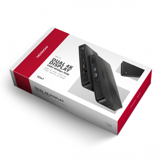 AXAGON HMC-U4, USB4 40Gbps dock, 3x USB-A, 2x USB-C, HDMI & DP 8K/30Hz, RJ-45, SD/mSD, audio, PD100W