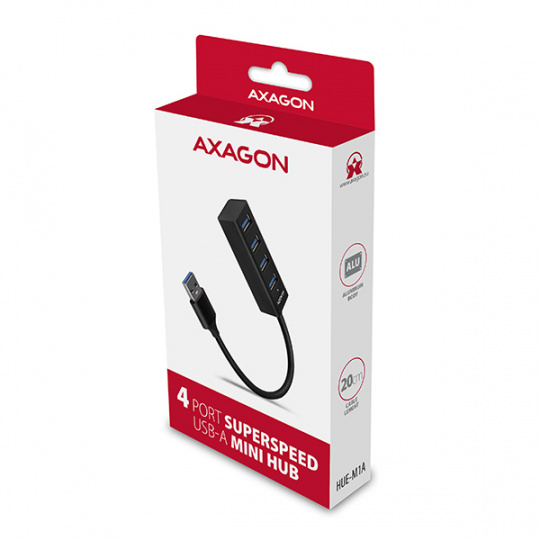 AXAGON HUE-M1A, 4x USB 3.2 Gen 1 MINI hub, kovový, kabel USB-A 20cm