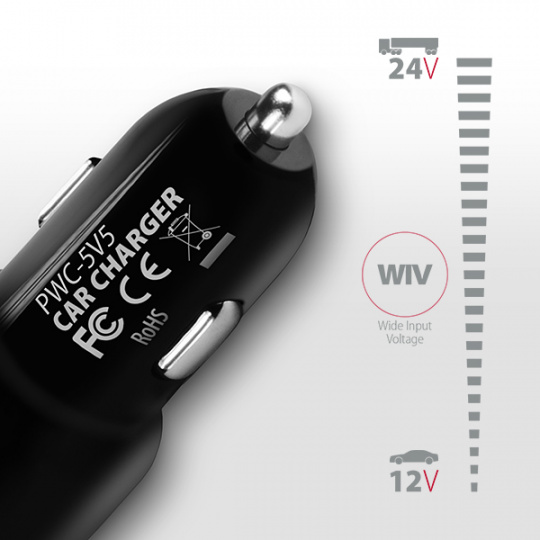 Nabíječka do auta AXAGON PWC-5V5, SMART, 2x port 5V-2.4A + 2.4A, 24W