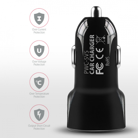Díky celkovému výkonu 24W nabíječka dobíjí mobilní telefony i tablety stejnou rychlostí jako síťový napájecí USB adaptér.