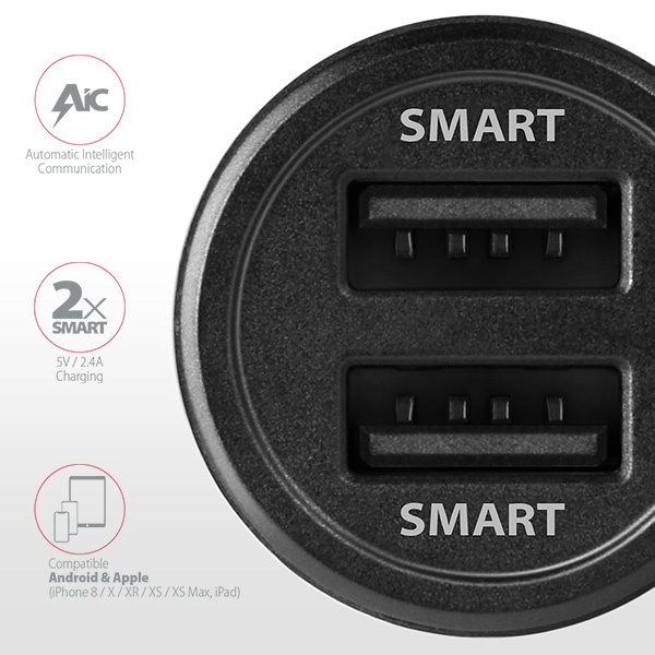 Nabíječka do auta AXAGON PWC-5V5, SMART, 2x port 5V-2.4A + 2.4A, 24W
