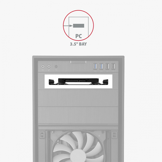 • Rozměry rámečku a montážní otvory odpovídají standardní 3.5" pozici PC skříně.