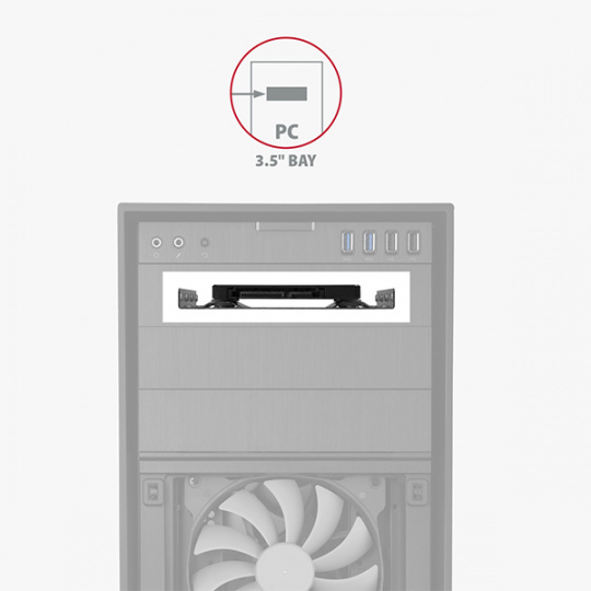 • Rozměry rámečku a montážní otvory odpovídají standardní 3.5" pozici PC skříně.