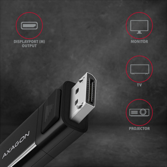 AXAGON RVC-DPC, USB-C -> DisplayPort redukce / kabel 1.8m, 4K/60Hz