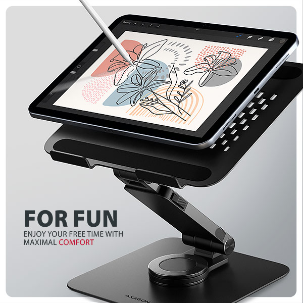 AXAGON STND-LRB, hliníkový stojan pro notebooky 10"-17.3" s nast. výškou, úhlem a 360° rotací, černý