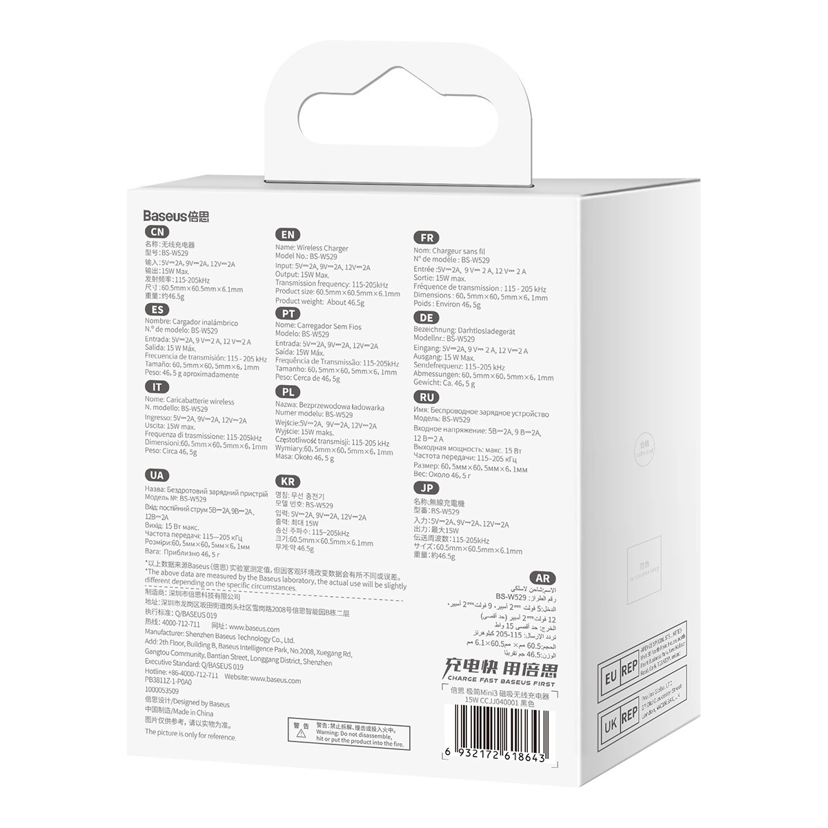 Baseus Bezdrátová nabíječka do sítě Simple Mini3 15W USB-C černá