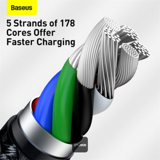 Kabel Baseus Cafule Series Type-C na Lightning – 20W PD Fast Charge & 480Mbps vysokorychlostní přenos dat, nylonové opletení, 25CM – černý