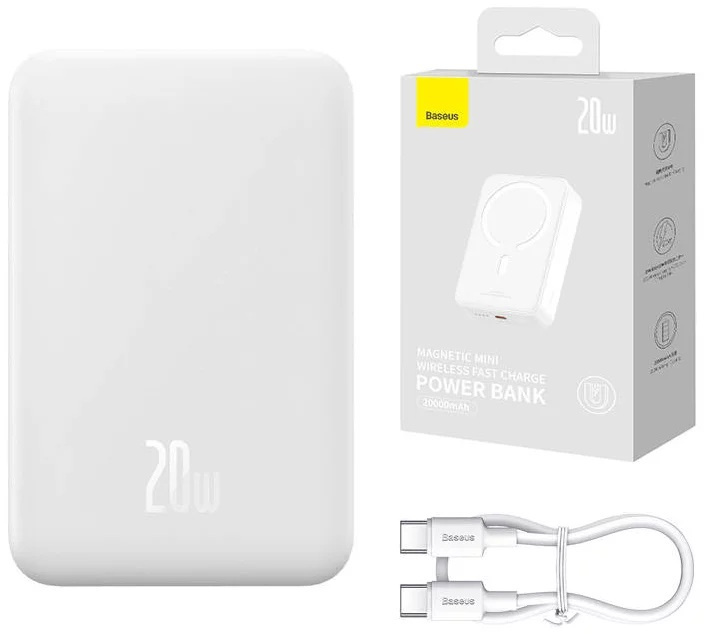 Baseus Magnetická Powerbanka 20000mAh 20W White