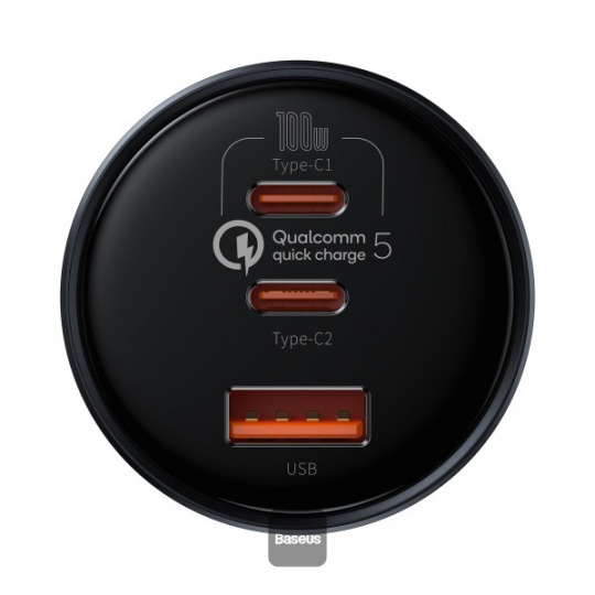Baseus nabíječka do auta 1x USB-A 2x USB-C Quick Charge 5 160W šedá + kabel USB-C