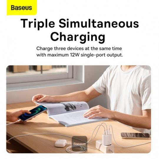 Baseus nabíječka do sítě Compact 3xUSB 17W bílá