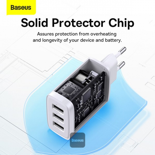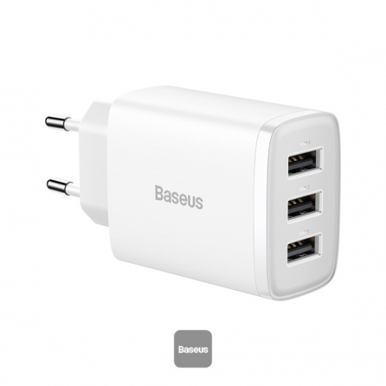 Baseus Compact Charger 3U 17W EU White 3xUSB Specifikace * výkon: 17W * konektory: 3x USB typ A * barva: bílá