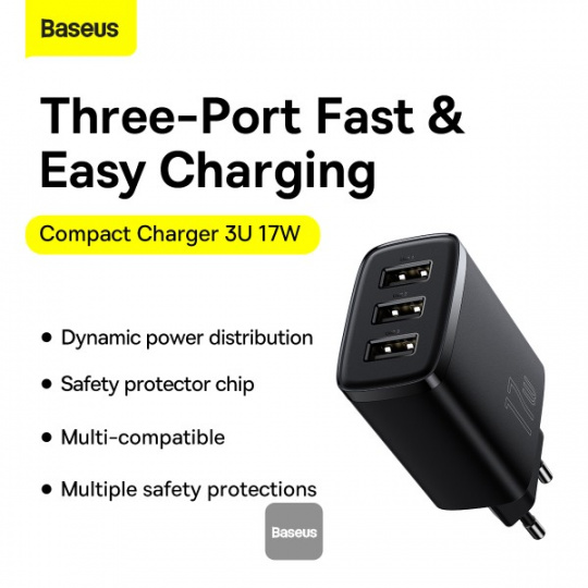 Baseus nabíječka do sítě Compact 3xUSB 17W černá