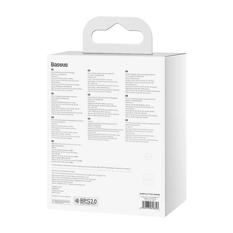 Baseus GaN5 Pro Ultra Slim 65W síťová rychlonabíječka