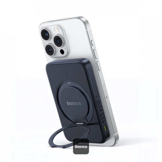 Baseus Powerbanka PicoGo Qi2 s otočným stojanem a bezdrátovým nabíjením 5000mAh 20W USB-C černá