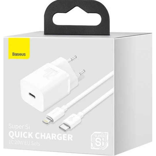 Baseus rychlonabíječka do sítě Super Si USB-C PD QC 20W s Lightning kabelem 1m bílá