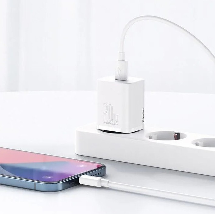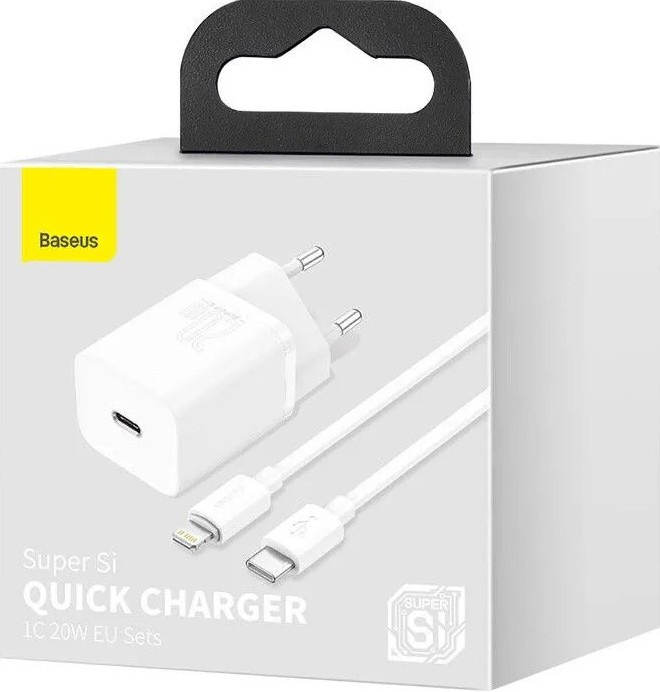 Baseus rychlonabíječka do sítě Super Si USB-C PD QC 20W s Lightning kabelem 1m bílá
