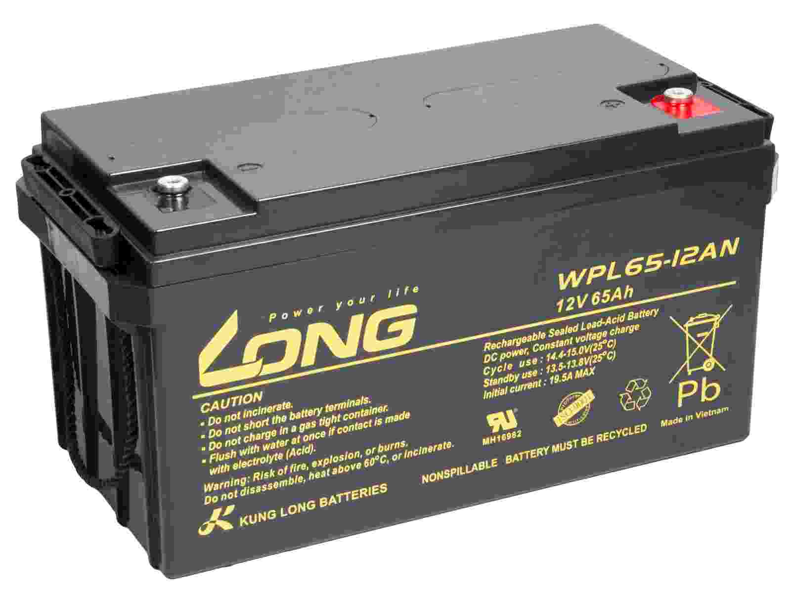 Baterie Long 12V 65Ah olověný akumulátor LongLife M6 10-12 let (WPL65-12AN)
