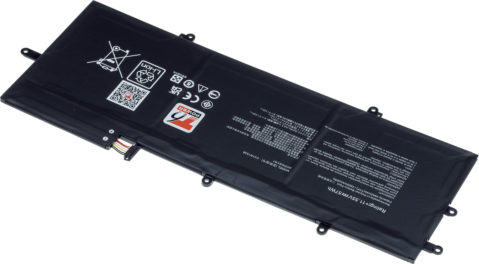 Typ: Li-poly Kapacita: 4940 mAh (57 Wh) Barva: černá Napětí: 11.55 V Rozměry: 278x108x4 mm Hmotnost: 200 g Produktová čísla: C31N1538, 0B200-02080000 Kompatibilní modely: Asus ZenBook Flip UX360UA, Asus ZenBook Flip UX360UAK