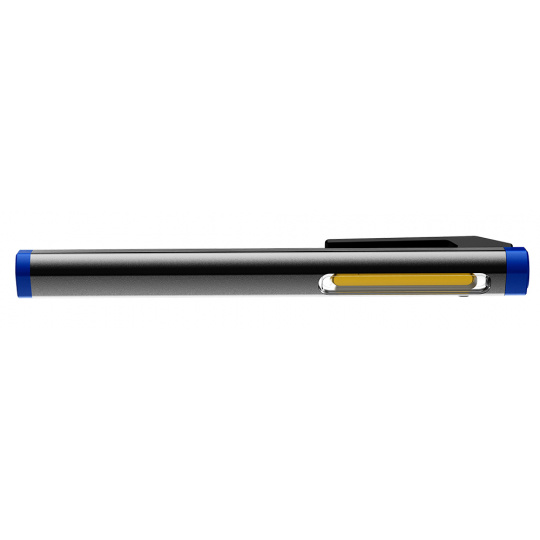 Svítivost 180 lm (SMD) – 300 lm (COB) • barva světla 5500–7500K • zdroj světla SMD + COB • kapacita baterie 3,7V / 650mAh • doba nabíjení 2 hodiny (USB-C) • provozní čas až 2 hodiny (SMD a COB) • odolnost IPX0 / IK07 • kompaktní tvar ve velikosti propisky • snadné přepínání režimů • hmotnost 55 g • intuitivní ovládání s nastavitelnou intenzitou světla