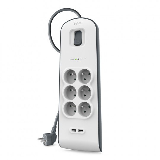 Belkin přepěťová ochrana BSV604 - 6-zásuvka, 2xUSB/2.4A, 2m